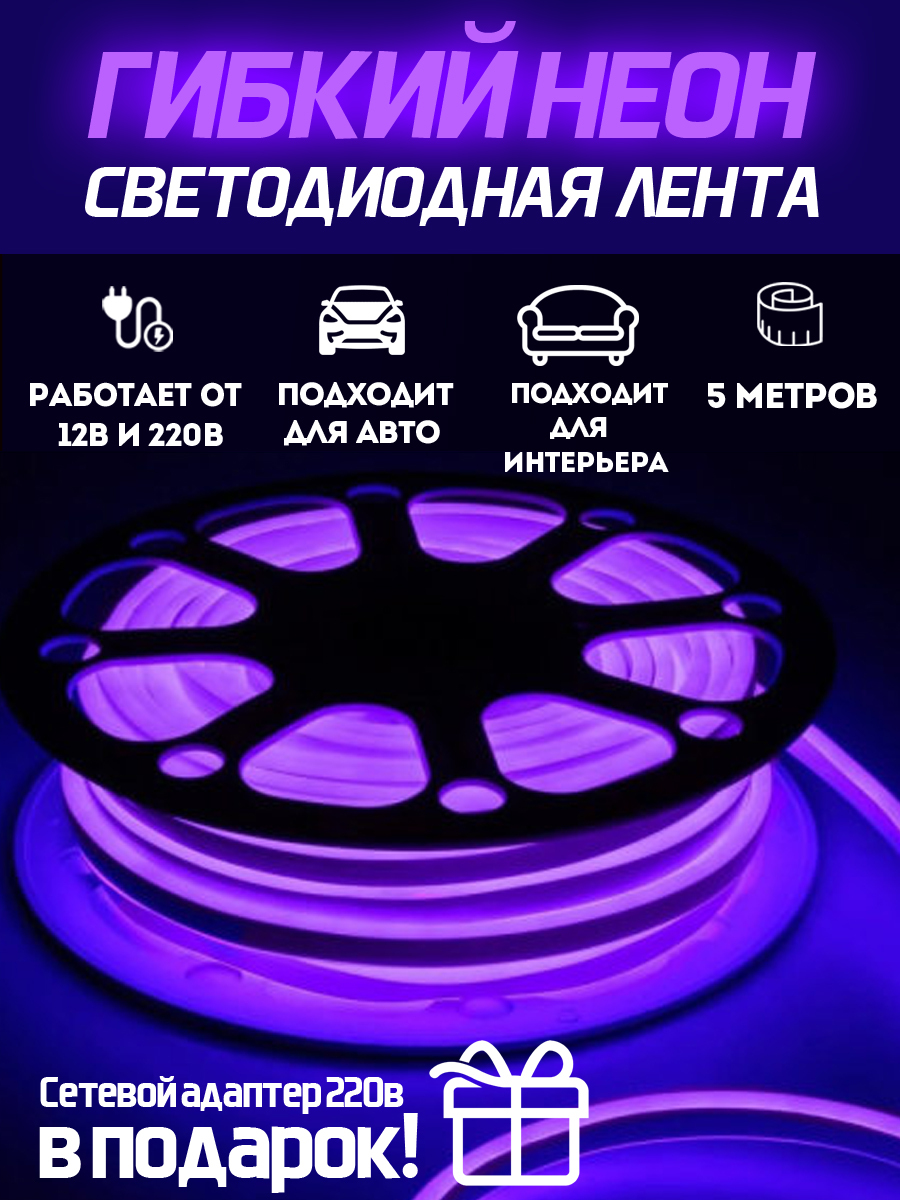 Светодиодная лента 5м, 220В, IP67, 120 LED/m Гибкий неон белый