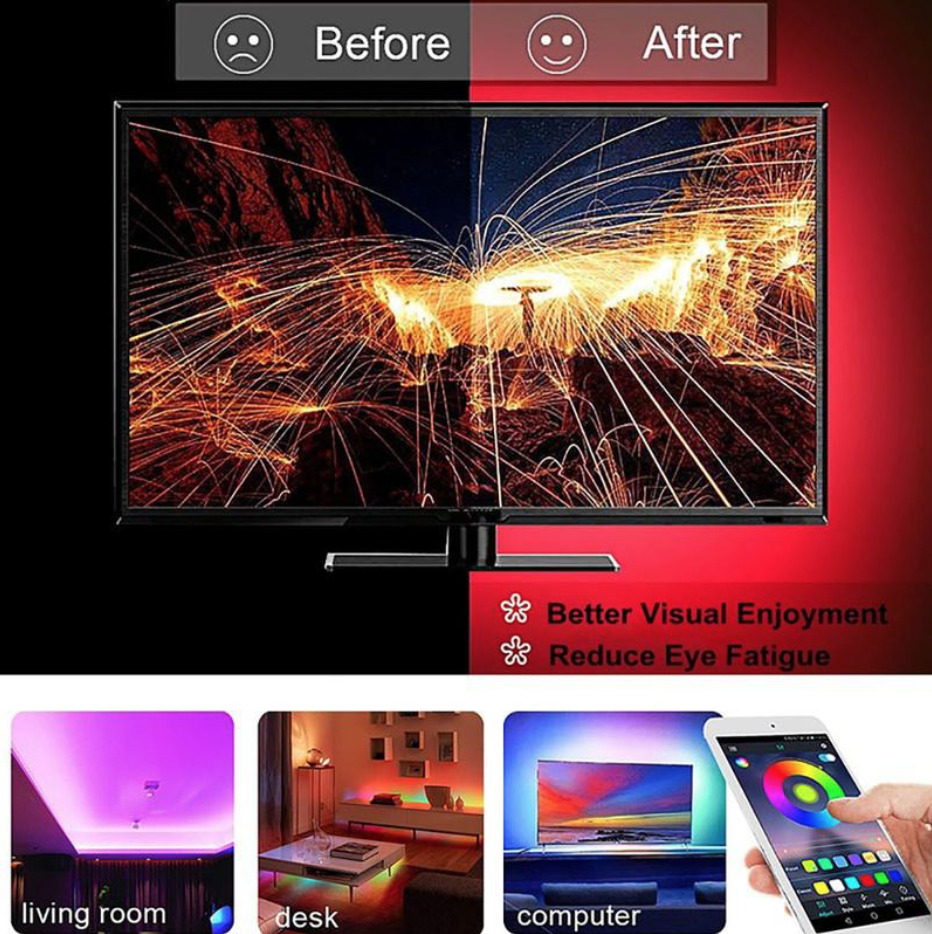 Комплект для светодиодной подсветки 2м, 5В, IP65, 30 LED/m TV LED Strip USB 5V 5050RGB