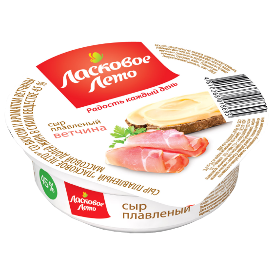 Сыр "Ласковое лето" со вкусом ветчины плавленый 45%, 100г