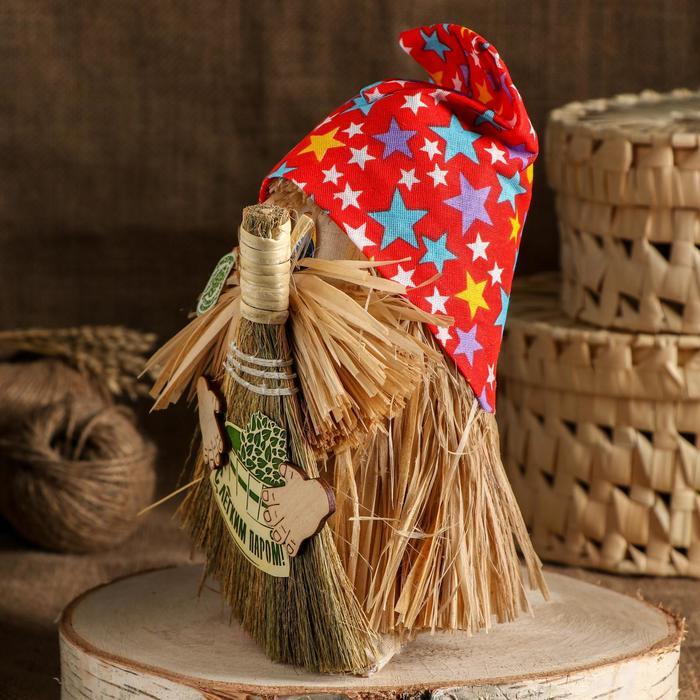 Оберег "Банник с веником" в колпаке, с пожеланием