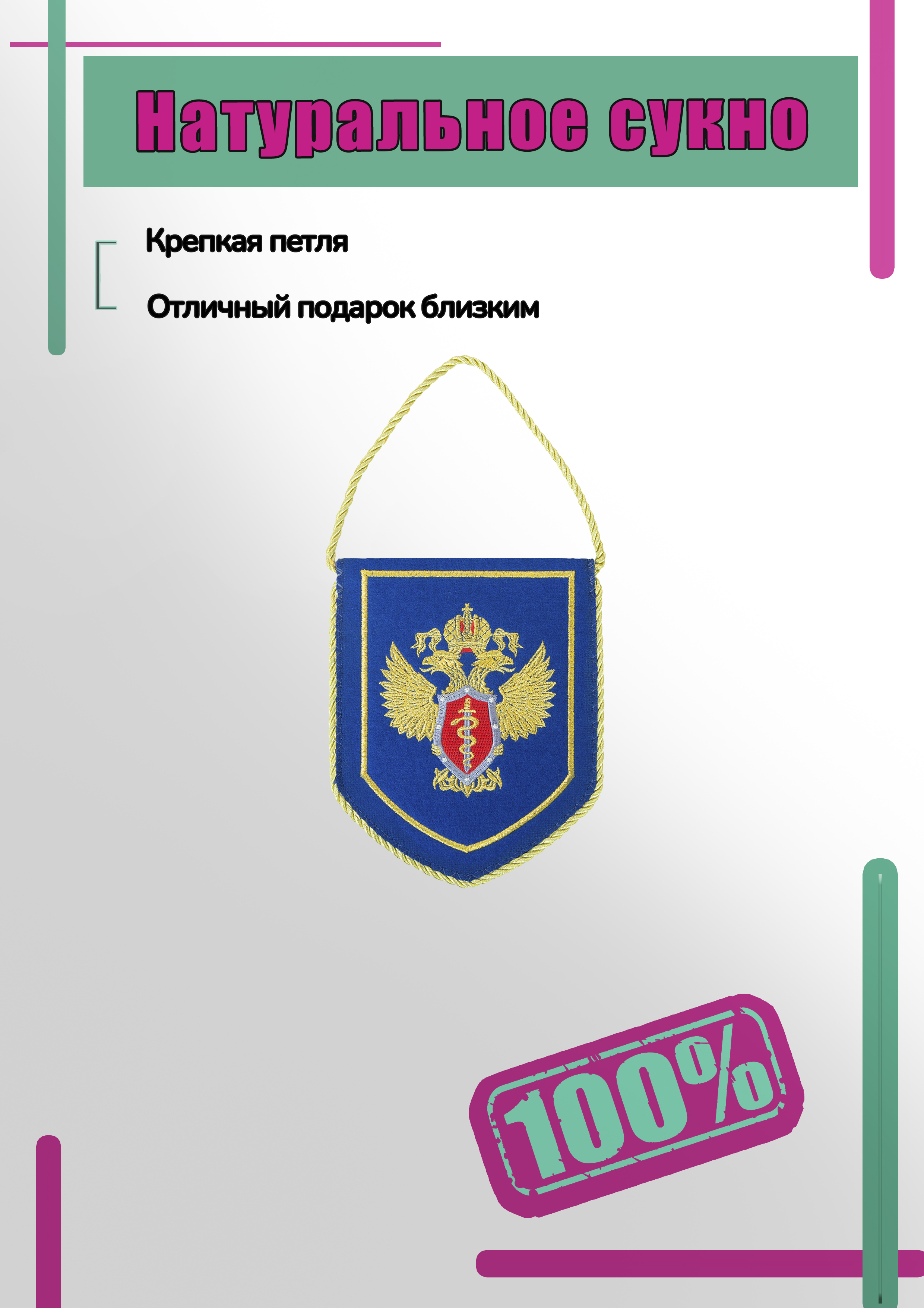 Вымпел с символикой ФСКН России вышитый малый 16х13 синий