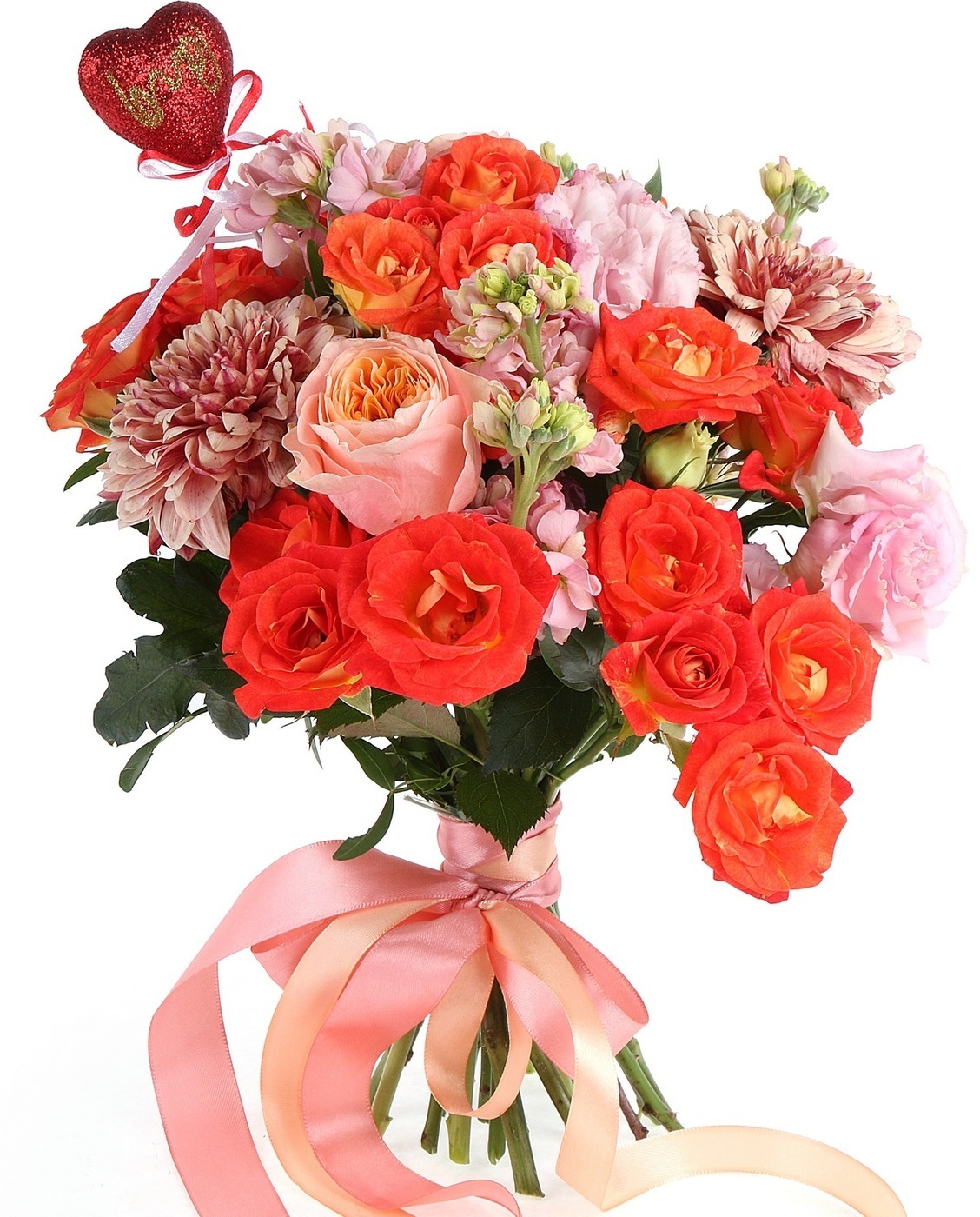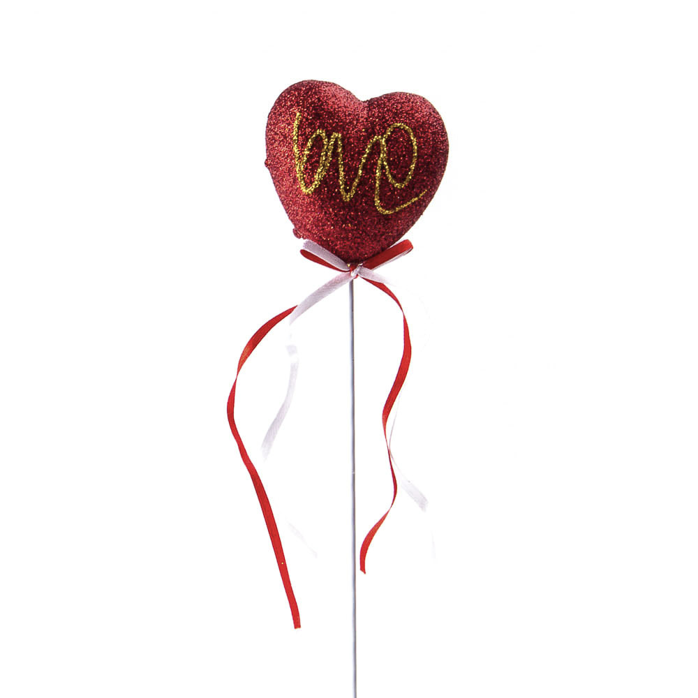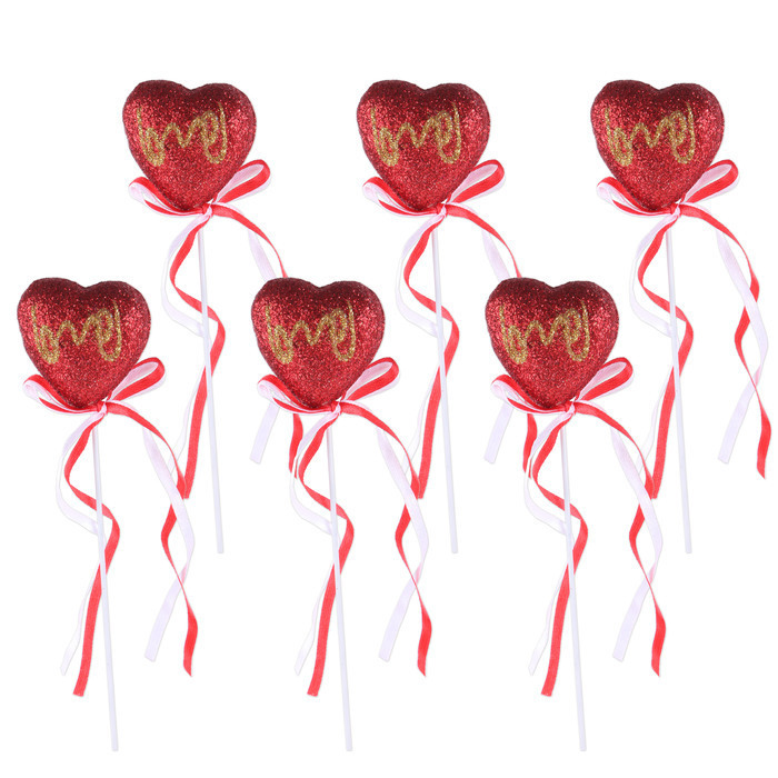Набор декоративных топперов "Сердце Love 6,5х6,5см H27см" красное c блестками / топпер 6 шт.