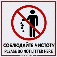 Табличка "Внимание не мусорить", односторонняя, 200 х 200 мм, ПВХ 1 мм