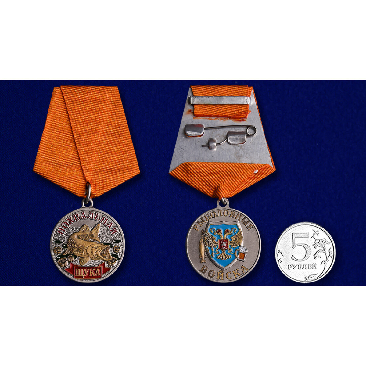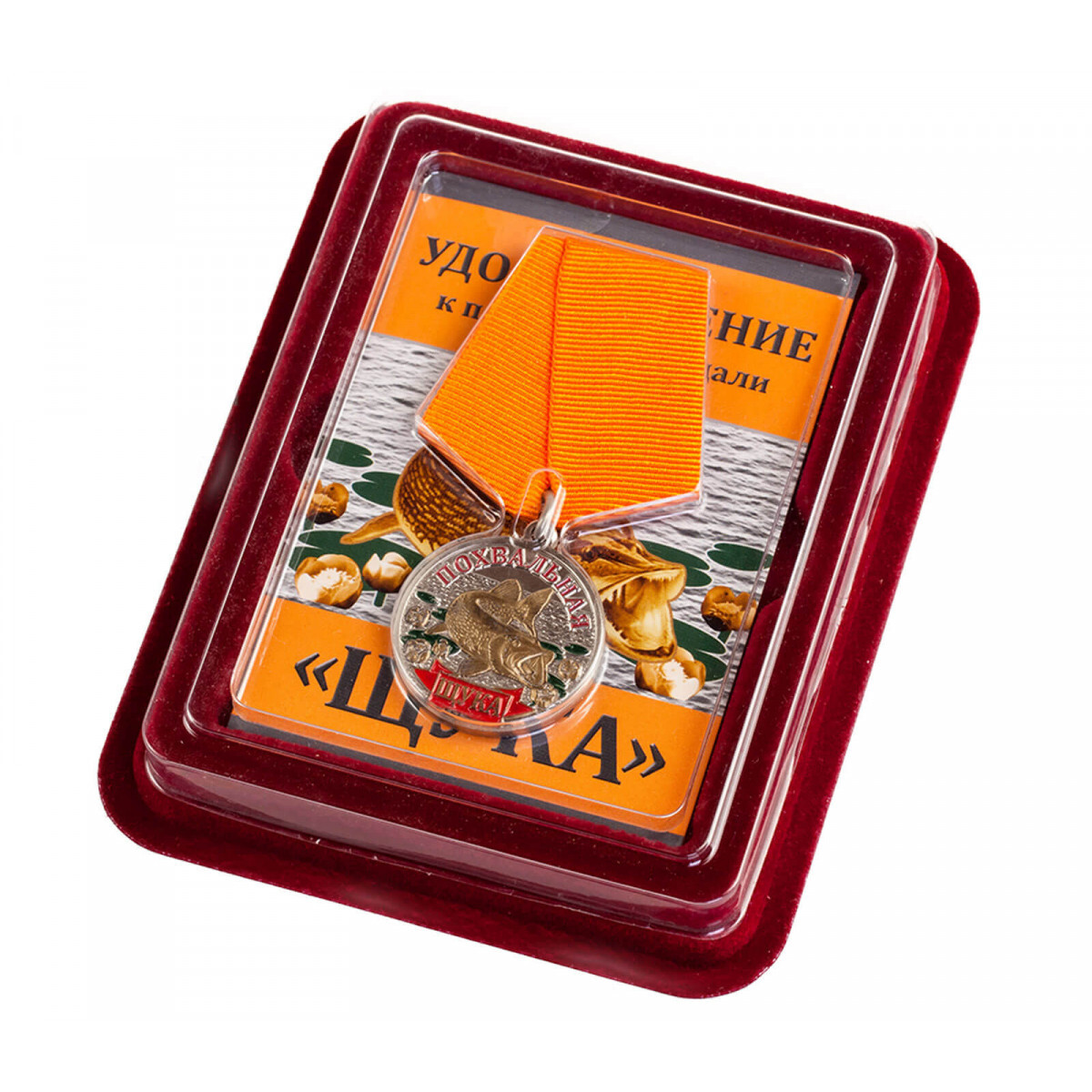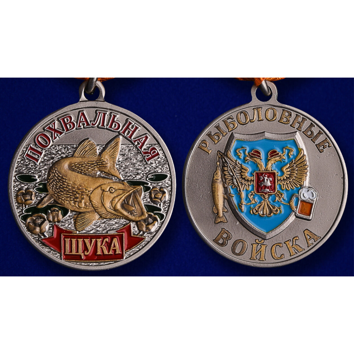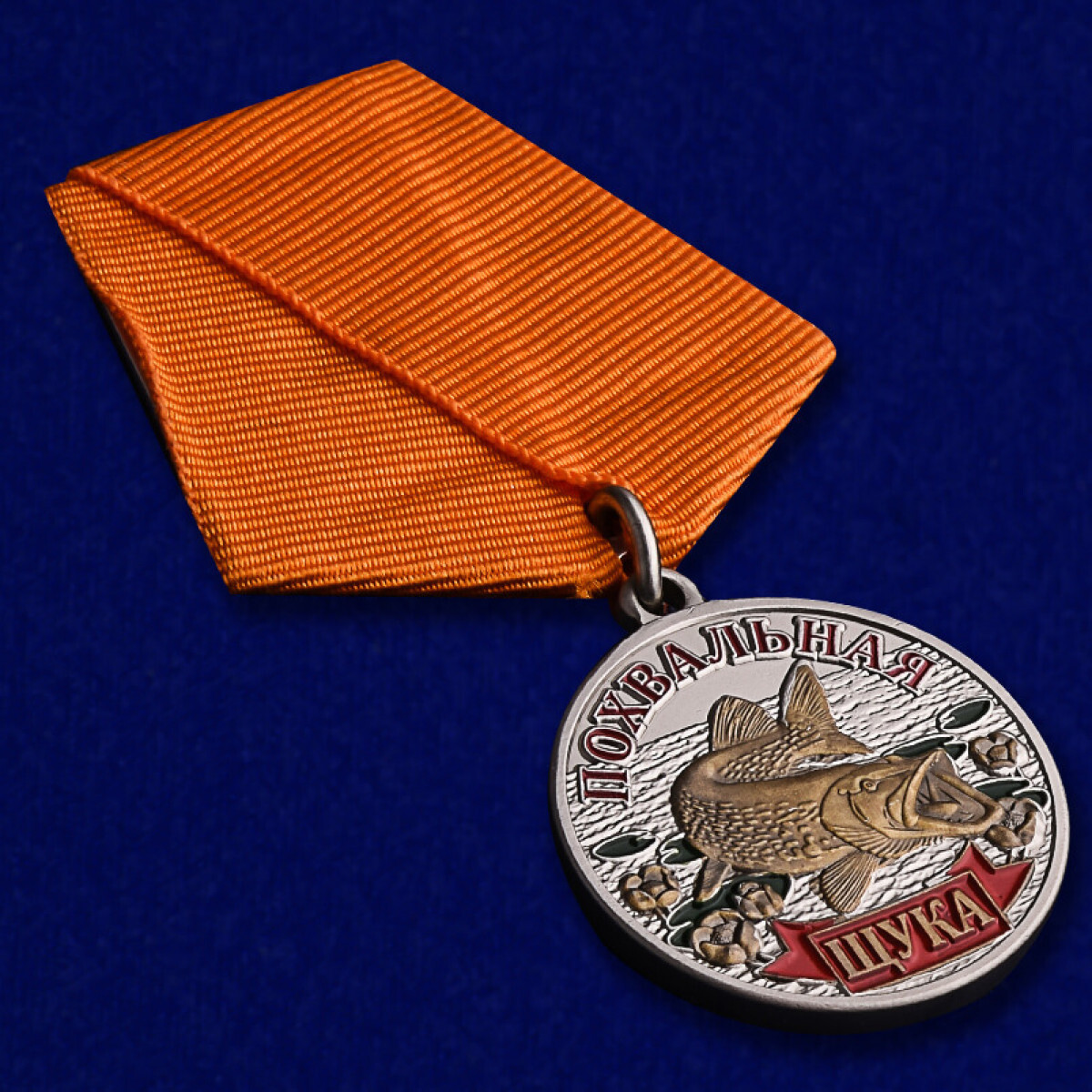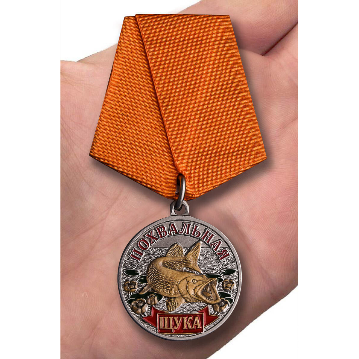 Медаль рыбака "Щука" (в бархатном футляре с прозрачной крышкой)