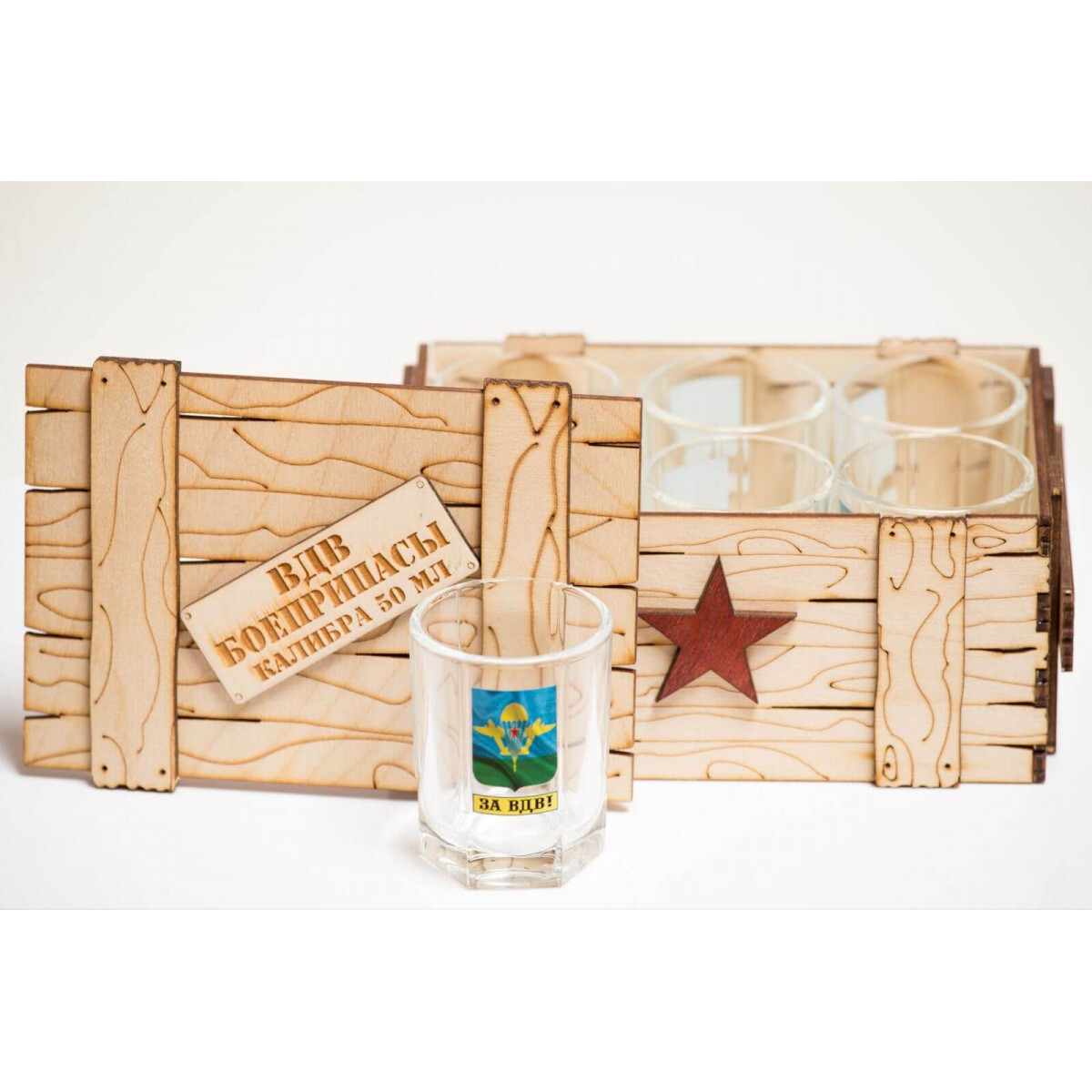 Набор сувенирный (деревянный ящик и 6 рюмок) ВДВ