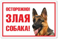 Табличка Злая собака (овчарка) самоклеящаяся пленка 400 х 300 мм