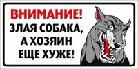 Табличка Злая собака и хозяин 30 х 15 см самоклеящаяся пленка