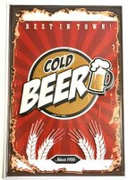 Винтажная пластиковая ретро табличка-наклейка. Лучший в городе. Золотое пиво (20 х 30 см)