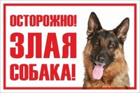 Табличка Осторожно, злая собака (овчарка) 30x40 см ПВХ 3 мм