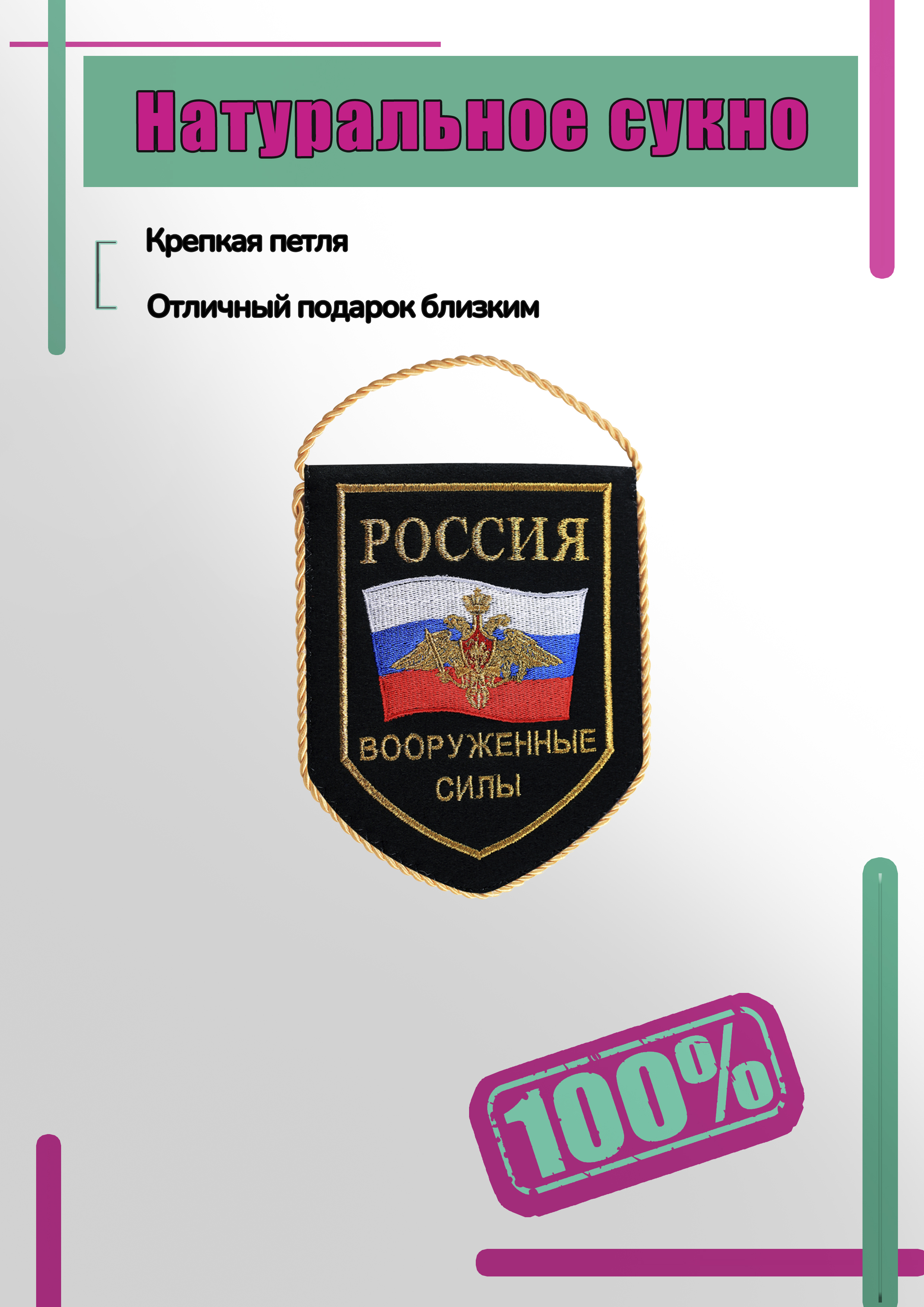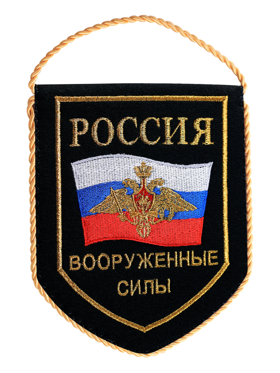 Вымпел малый с вышивкой Вооруженные Силы РФ 16х13 черный