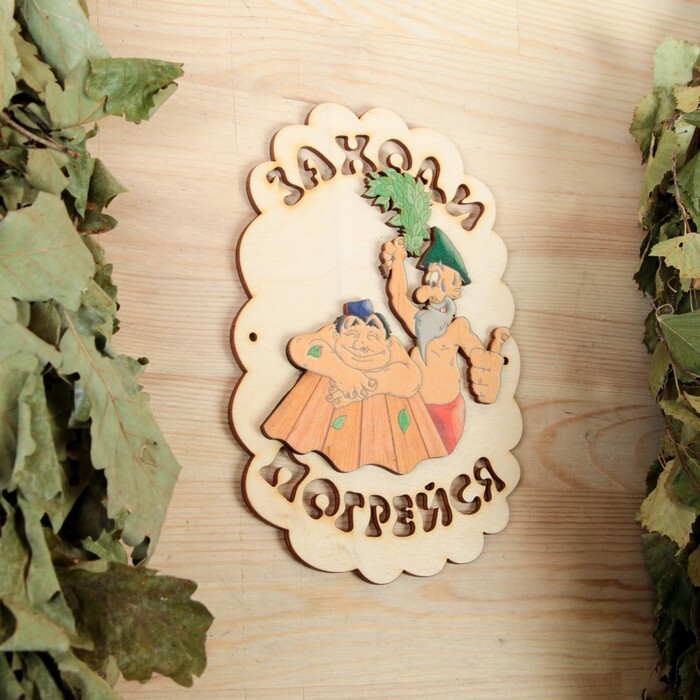 Табличка для бани "Заходи погрейся", дед парит, 18.5х13см