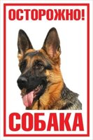 Табличка Осторожно! Собака (овчарка) 25 х 35 см самоклеящаяся пленка