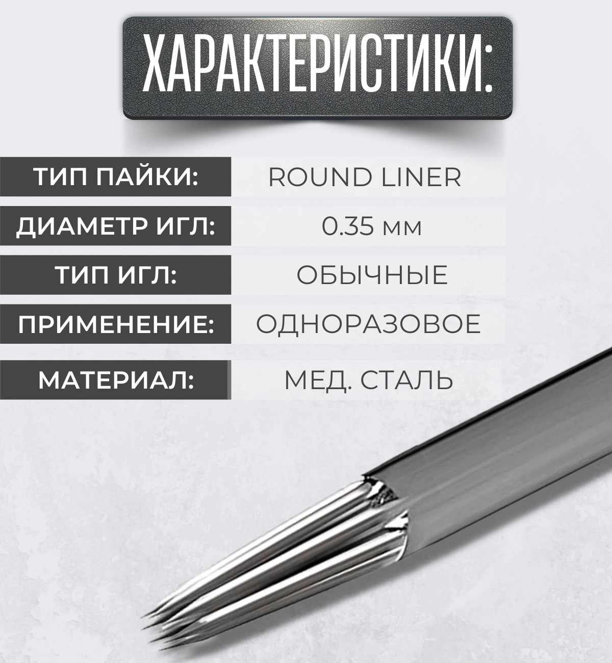 Тату иглы Blackbird 0.35 мм - Round Liner 35/01RL, 12/01RL, 1RL иглы стандартные для тату, перманентного макияжа, татуажа - 50 шт/уп