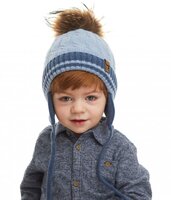 Детская шапка с меховым помпоном Тео / 70406 / светло-серый