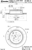 Диск тормозной задний nissan x-trail 2.0/2.5/2.2dci 01 Brembo 09896920