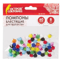 Помпоны для творчества, блестящие, 10 цветов, 8 мм, 60 шт., остров сокровищ