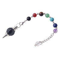 Большой маятник для биолокации Семь Чакр 4х1,8 см. с камнем Черный агат