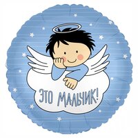 Agura Круг С Рождением Мальчика! (ангел) Голубой 18"/45см шар фольга