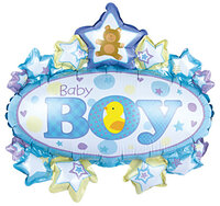 Шар с клапаном (16''/41 см) Мини-фигура, Овал Это Мальчик, Голубой, 1 шт.