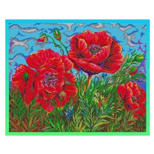 Вышивочка Набор для вышивания чешским бисером на атласе Яркие маки 38 х 48 см (ВЛ-077П)