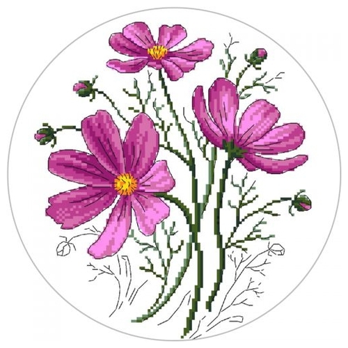 Цветной Вышивка крестом Космея 21 х 21 см (VC012)