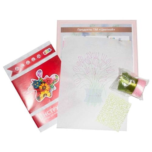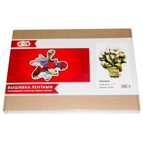 Цветной Вышивка лентами Тюльпаны 20 х 30 см (VL003)