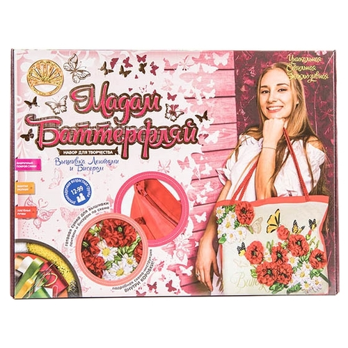Лапландия Набор для вышивания лентами и бисером Мадам Баттерфляй Маки и ромашки (сумка) 18522
