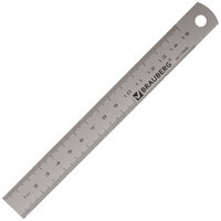 Линейка металлическая 15 см, BRAUBERG, европодвес, 210630