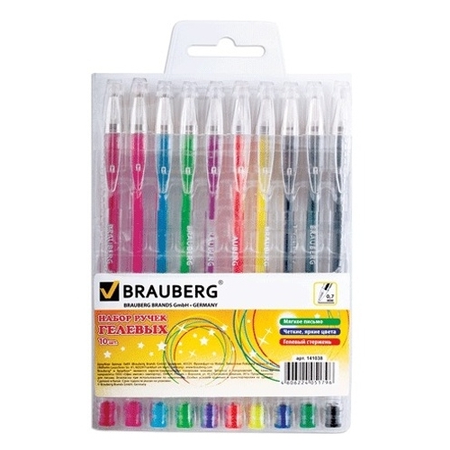 BRAUBERG набор гелевых ручек Jet 10 цветов (141038)
