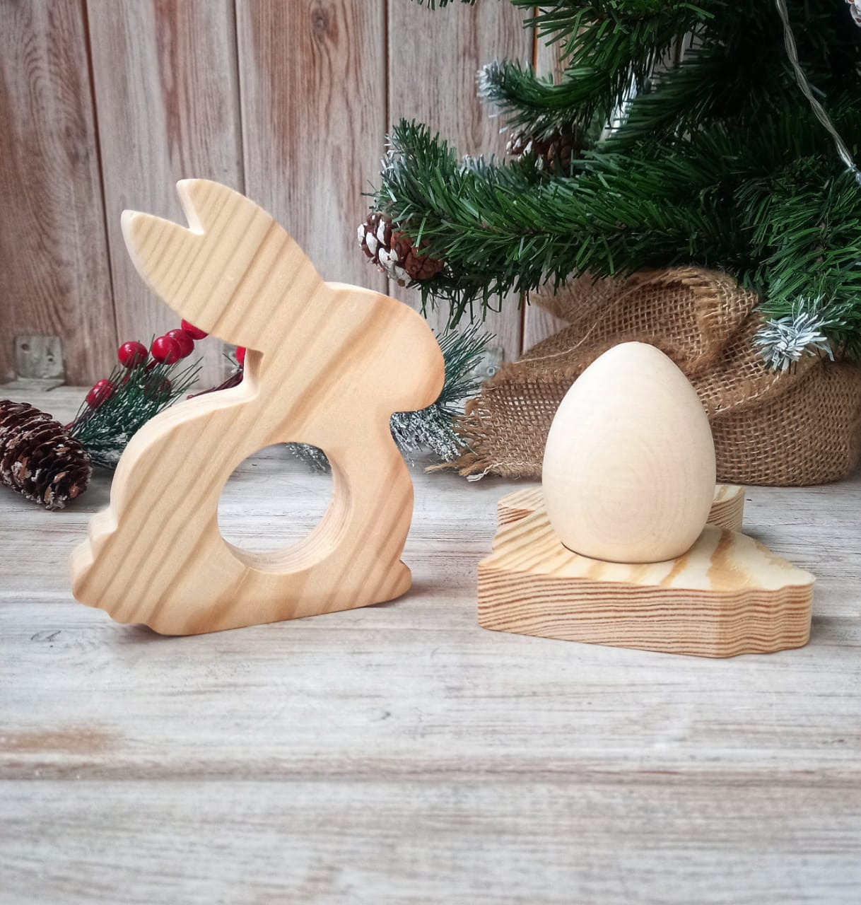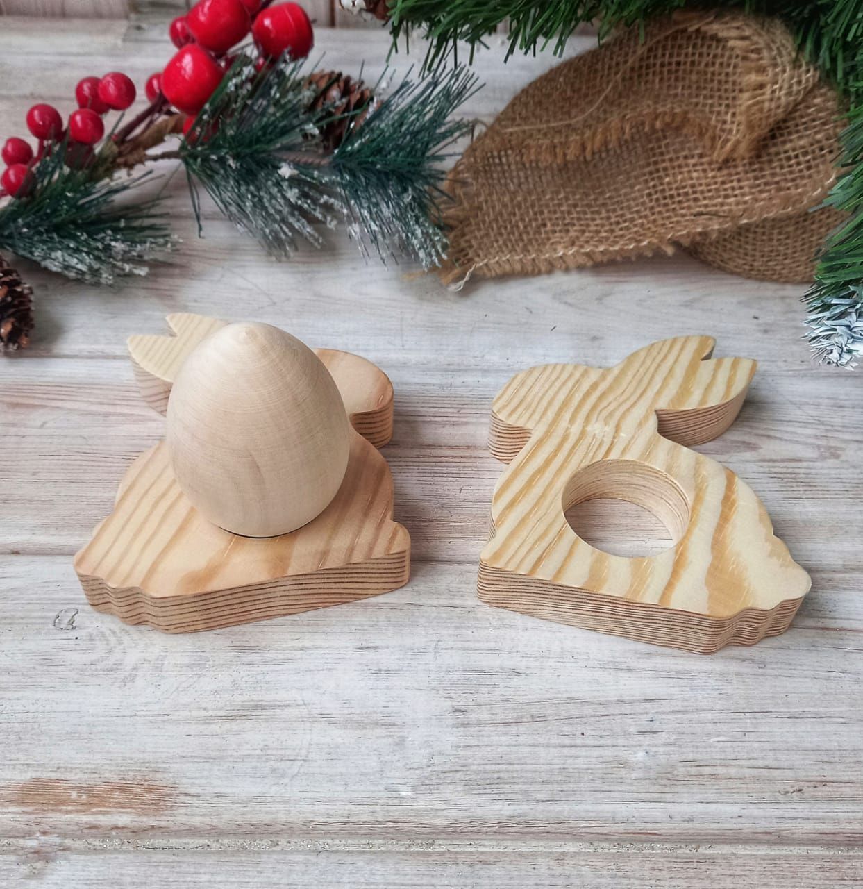 Пасхальная подставка под яйцо деревянная Кролик, пасхальный декор из сосны, 2 шт