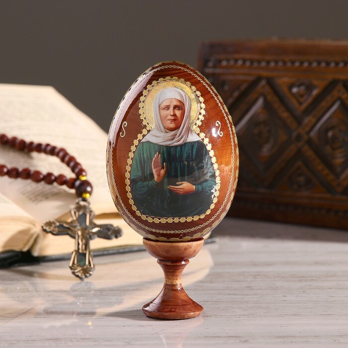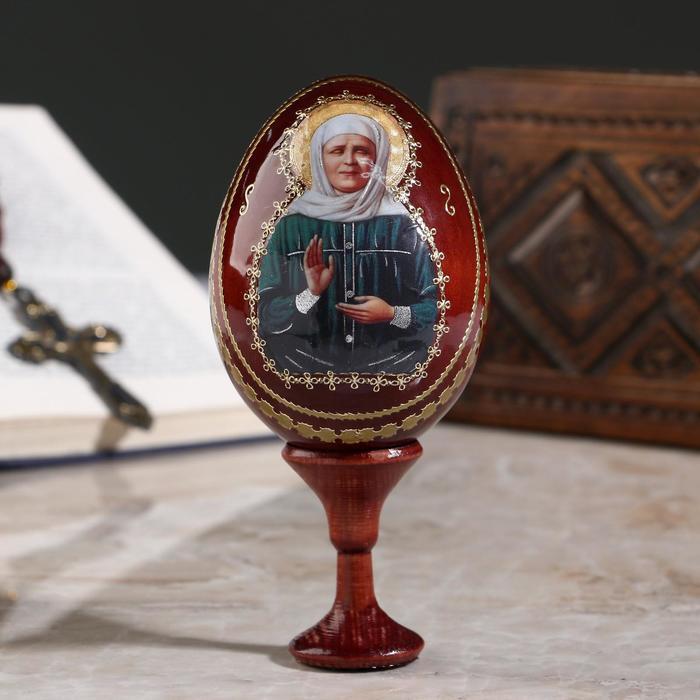 Сувенир Яйцо на подставке икона 'Матрона Московская'