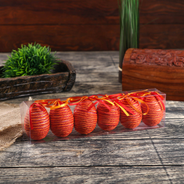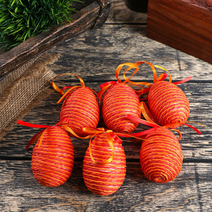 декор пасхальный/сувенирный набор/Декор пасхальный подвеска "Яйцо плетенка" набор 6 шт яйцо 4х6 см