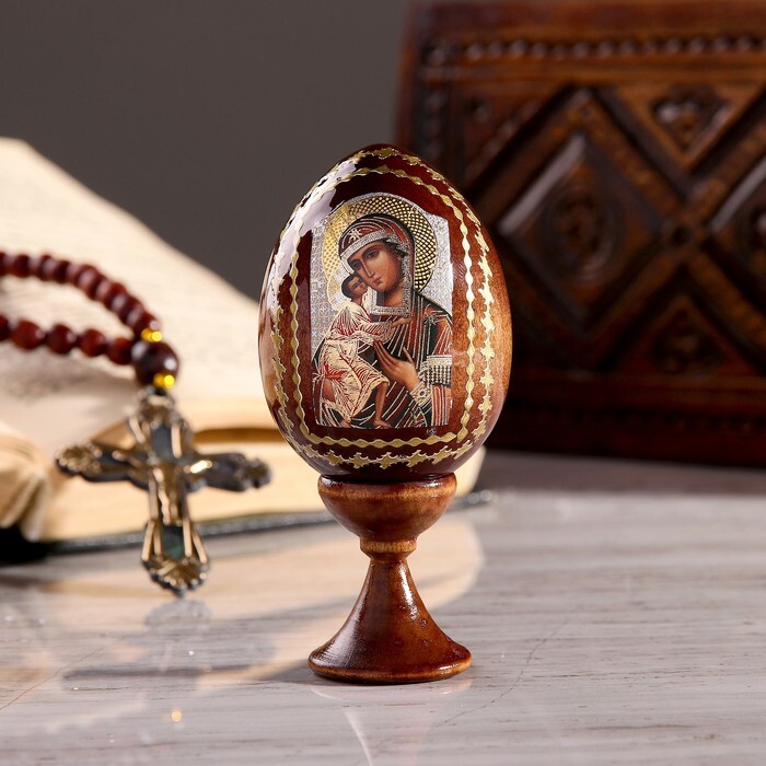 Сувенир Яйцо на подставке икона "Божья Матерь Феодоровская"