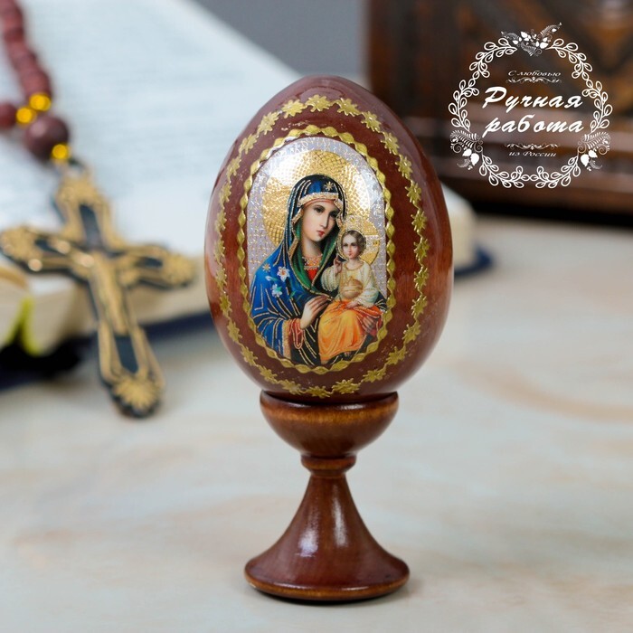 Сувенир Яйцо на подставке икона "Божья Матерь Неупиваемая чаша"