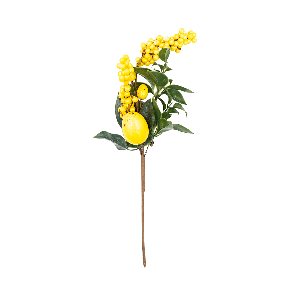 Веточка пасхальная с ягодами и яйцами желтая, 27 см