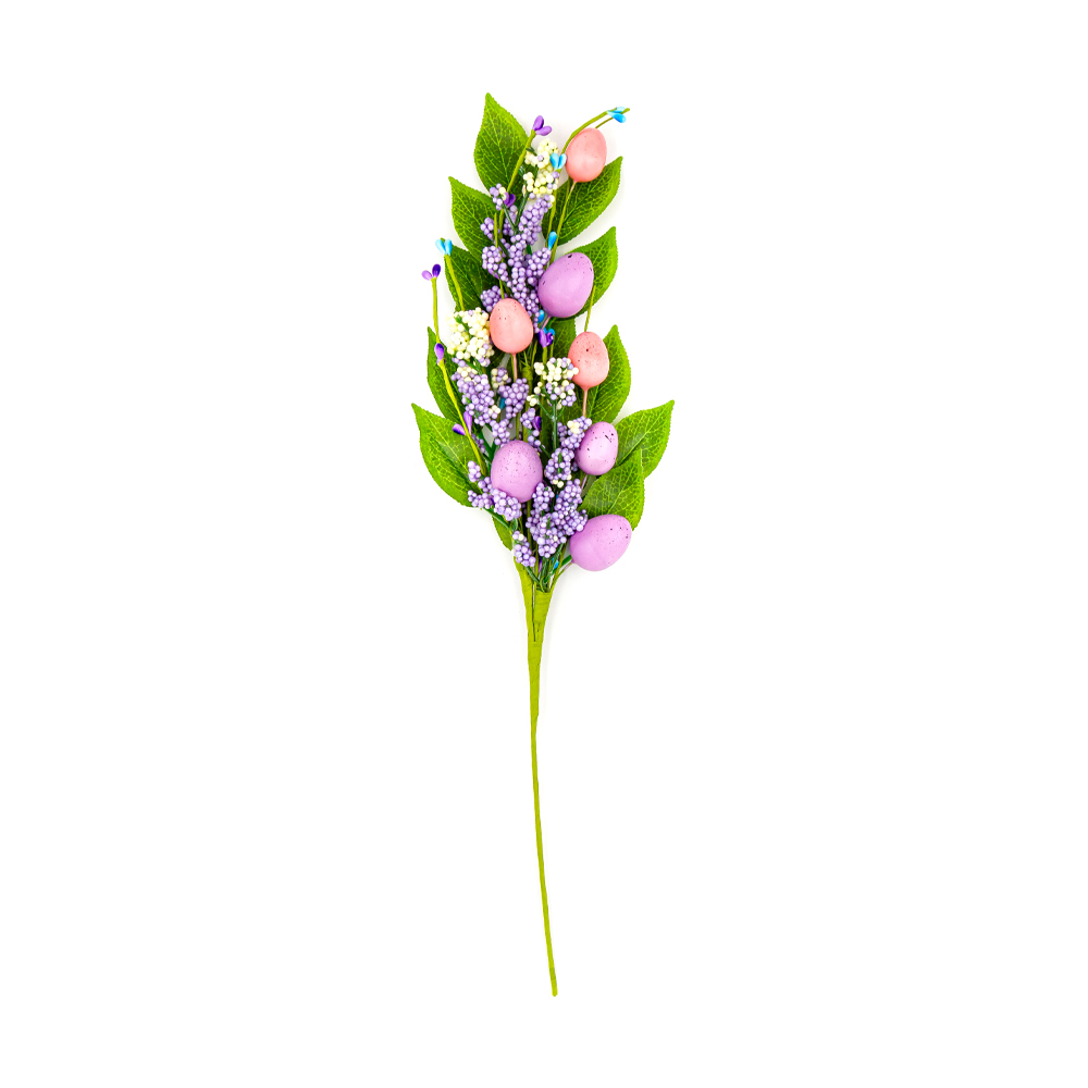 Декорация пасхальная ветка с яйцами (розовый, фиолетовый) 39 см