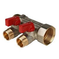 Коллектор с шаровыми кранами 3/4", 2 отвода 1/2" (красные ручки)