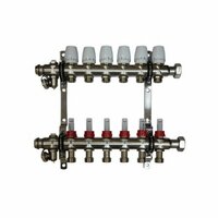 Коллектор Uni-Fitt 1"х3/4" 5 вых. с расходомерами и термо вентилями, нерж. сталь
