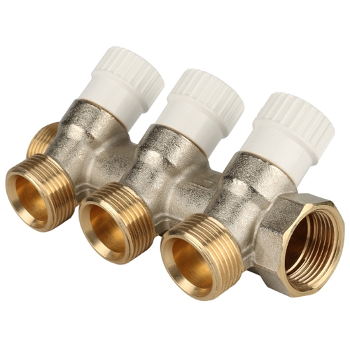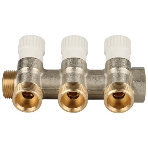 Коллектор проходной регулируемый STOUT (SMB 6851 343403) 3/4" НР-ВР, 3 отвода 3/4" ЕК