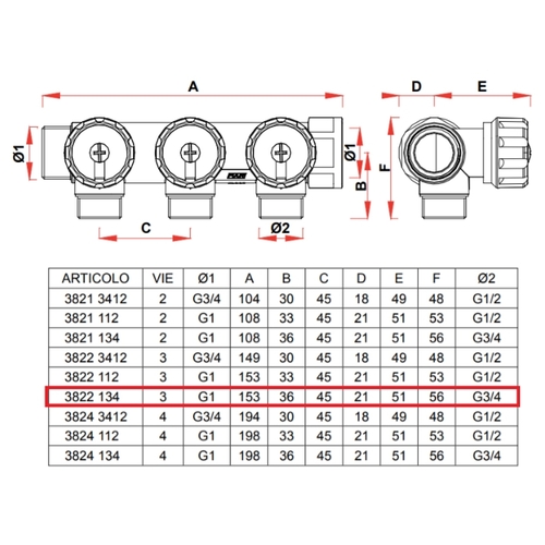 Коллекторная группа MVI (MS.412.06) 1" ВР, 12 отводов 3/4"