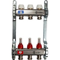 Коллектор STOUT с шаровыми кранами 3/4", 3 отвода 1/2" (красные ручки)