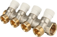 Коллектор 3/4" внутр(г) х 4 отвода 16 обж(ц) х 3/4" нар(ш) с шаровыми кранами