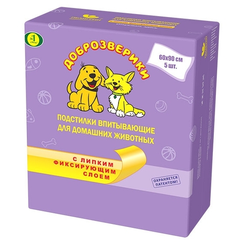 Подстилки Доброзверики Сухие лапки с суперабсорбентом для животных (60 х 60 см, 5 шт)