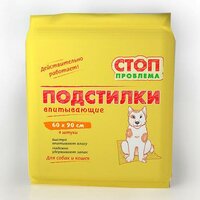 Туалеты и аксессуары для собак Стоп-проблема Подстилки, размер 90х60см 4 шт (0,2 кг)