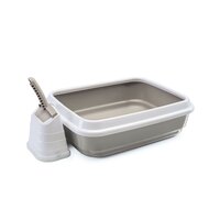 Туалет для кошек с бортом и совком Imac "DUO", бежево-серый, 59x40x28 см