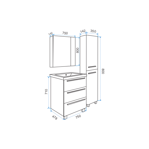 Тумба под раковину BelBagno Energia-N ENERGIA-N-800-2C-PIA-BL белый