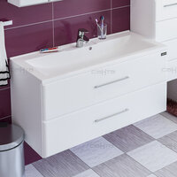 Тумба с раковиной СанТа Омега Люкс 100 подвесная белая 2 ящика