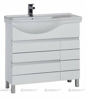 Тумба под умывальник напольная Aquanet Доминика 90 (ПЛ), 2 ящика, белый (правая сторона)