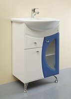 Тумба-умывальник напольная Норта Стэп 08 белый+синий, 2 двери, 1 ящик с раковиной Уют 550 (Стиль 55) санфаянс