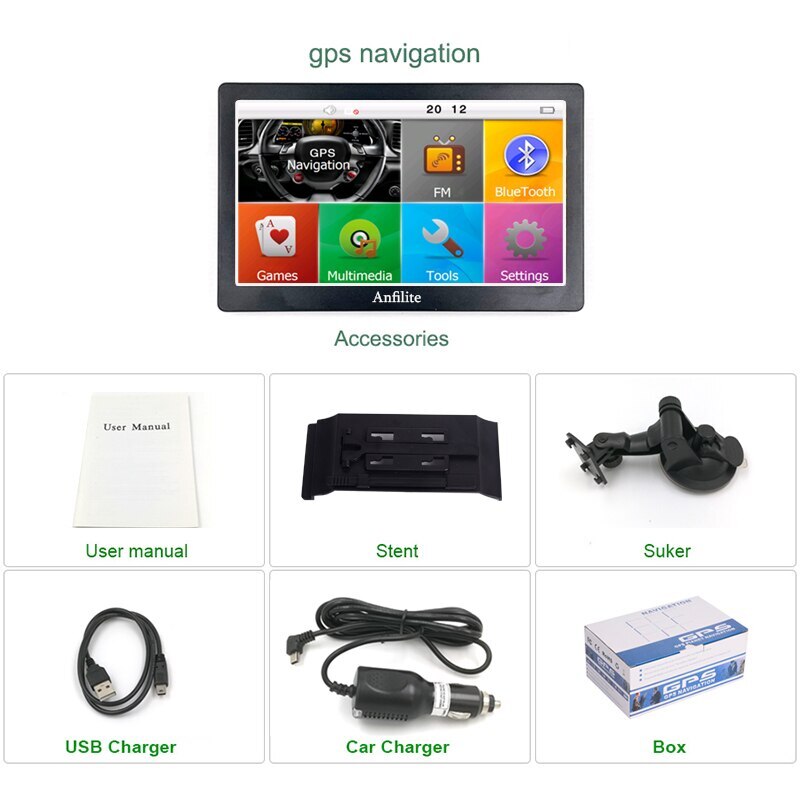 Anfilite 7 Дюймов Автомобильный Грузовик Gps Навигатор Емкостной Экран Bluetooth 256M + 8Gb Bluetooth Avin 2020 Европа Испания Италия Франция Карты